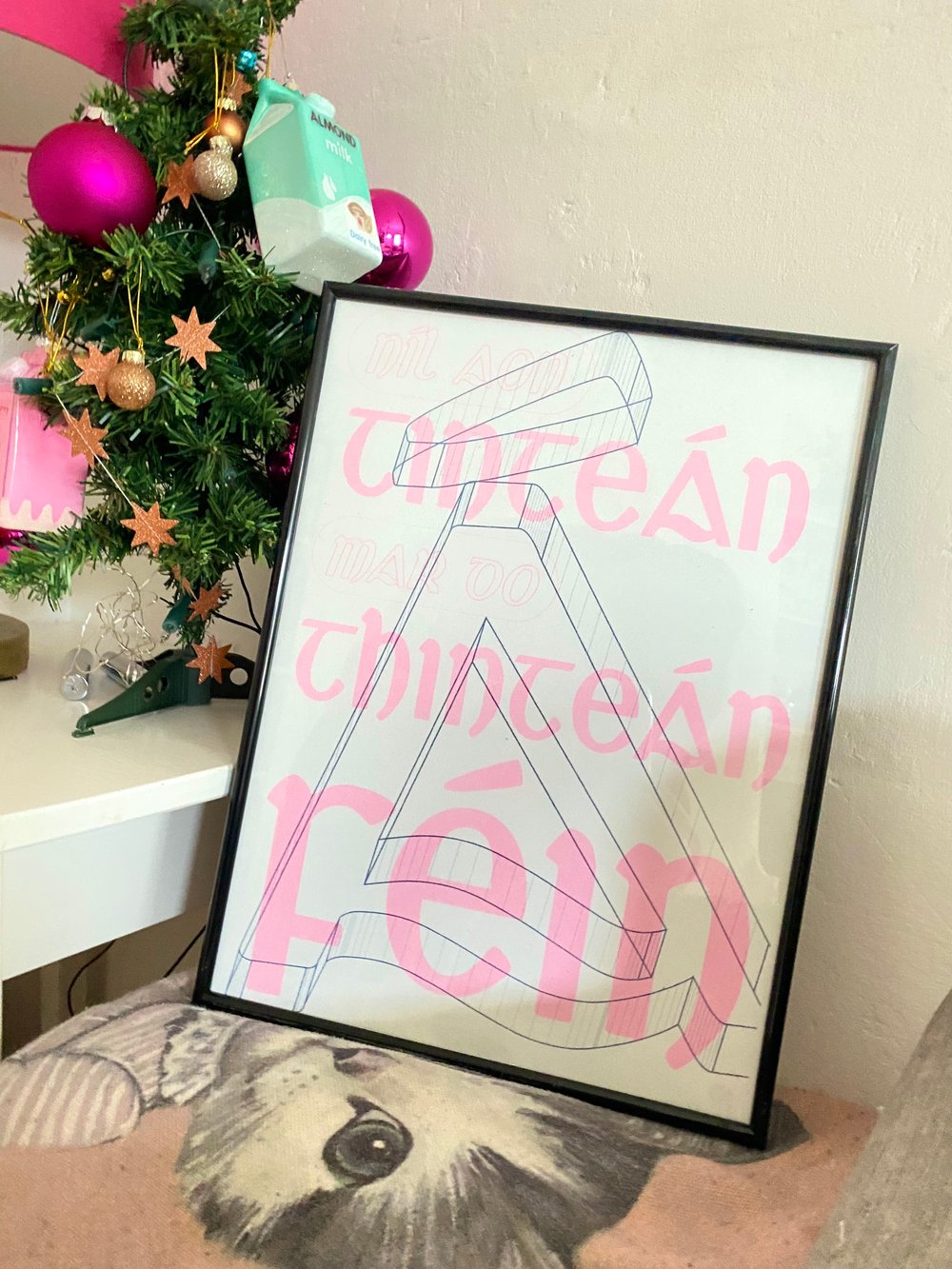 This print is part of my Gaeilge project, which aims at promoting and reviving the Irish language through a contemporary lens. Old Irish typefaces were used in contrast with a modern design to showcase how An Ghaeilge is surviving through the years. If you'd like to find out more about the project, head over to my Instagram @eimearalice.